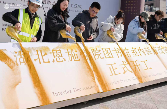 寒冬虽至,温暖不减。近日,湖北恩施学院图书馆前洋溢着庄重与期待的氛围,“时光为卷·焕新启航”图书馆室内装修改造项目开工仪式隆重举行。时值寒假,校园里多数师生已返家团聚,而学校依然选择在这个时段全力推进改造——只为在新学期到来时,为学生呈现一个更美、更优、更具人文关怀的学习空间。校领导、施工单位代表与留校师生代表共同见证了这一凝聚心意与匠心的时刻。