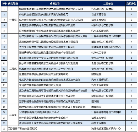 日前,江苏省政府网站发布了《省政府关于2024年度江苏省科学技术奖励的决定》,江苏大学获奖23项,获奖数量创历史新高,包括一等奖5项、二等奖13项、三等奖4项,并首次实现“江苏省青年科技杰出贡献奖”突破,获奖总数和质量实现双提升。