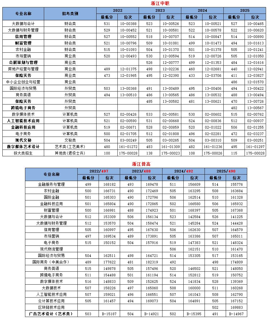浙江金融职业学院2022年—2025年录取分数线(浙江)