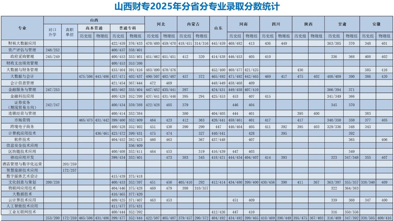 山西省财政税务专科学校2025年分省分专业录取分数