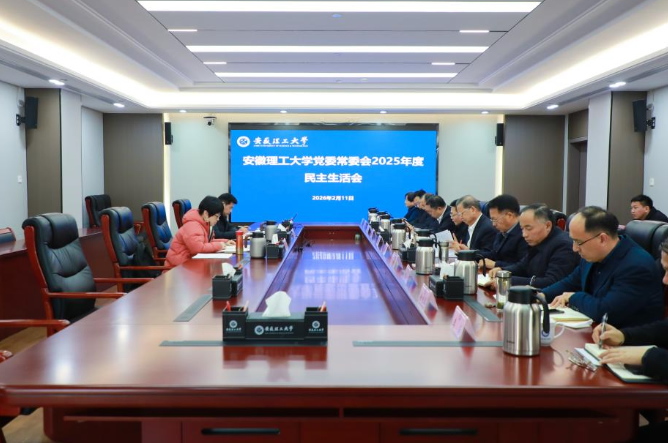 按照党中央和省委统一部署要求,经省委第十九督导组同意,2月11日,安徽理工大学党委常委会在学校213会议室召开2025年度民主生活会。督导组组长、省教育厅科研处副处长李灿,成员、省教育厅学生处一级主任科员殷平化到会指导。校党委书记余玉刚主持会议并作总结讲话。校党委常委会其他成员袁亮、鲁超、王献余、王先江、张平松、赵光明、徐良骥、李梁参加会议。副校长饶莹列席会议。