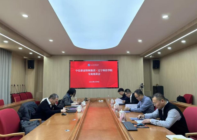 2月9日,中信泰富特钢集团总裁助理兼科技部部长许晓红、科技部研发室主任周群一行来辽宁科技学院开展校企座谈会。此次座谈是继1月7日校长臧喜民、副校长闫海军带队赴中信泰富特钢集团调研后的回访。此次座谈,双方围绕“高端金属材料和特种合金创新联合体”协议内容,进一步深化合作、共谋发展。臧喜民参加本次座谈会。