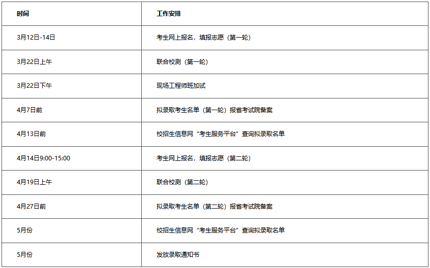 1. 报名时间:第一轮志愿填报时间:2026年3月12日至14日(截止时间为3月14日17:00);第二轮志愿填报时间:2026年4月14日9:00至15:00。如第一轮已完成招生计划,将不再接受第二轮申请报名。