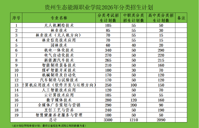 第六条 招生计划详见省招生考试院公布的贵州省2026年高职(专科)分类考试招生专业目录。