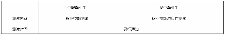采用“文化素质+职业技能适应性测试”的评价方式:其中职业技能适应性测试成绩满分100分。参加普通高中学业水平考试考生的“文化素质成绩”为“学业水平考试11门科目原始成绩之和×2/3÷11”,参加普通高中学业水平合格性考试考生的“文化素质成绩”为“合格性考试10门科目原始成绩之和÷10”,录取成绩满分100分,其中文化素质成绩占40%、职业技能适应性测试成绩占60%。