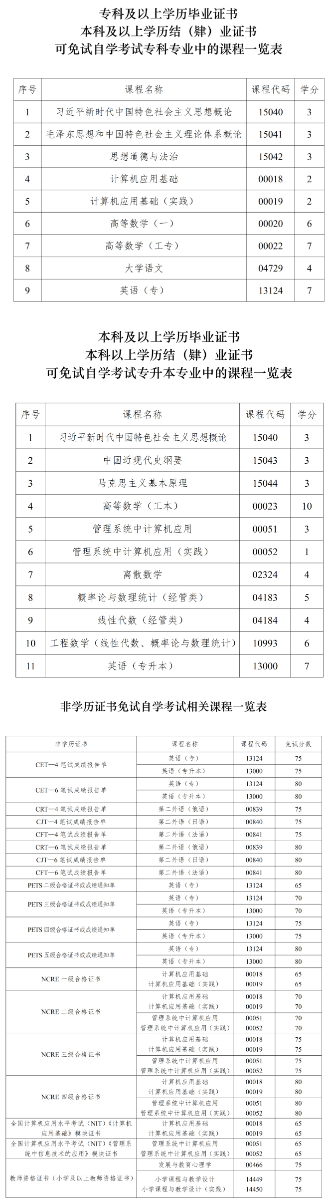 2.申请免试的课程对应的学历层次应不低于免试课程对应的学历层次。名称和代码相同的自学考试课程,申请免试时,不受学历层次限制;通过国家承认学历的各类高校“习近平新时代中国特色社会主义思想概论”课程考试且成绩合格的,申请免试时,不受学历层次限制。