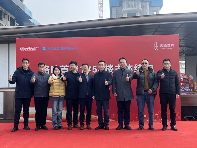 随后,董文斌一行在金波的陪同下,出席了珞喻首府项目的双楼封顶仪式。金波在仪式上致辞表示,双楼荣耀封顶,不仅是项目建设的重要里程碑,更是光谷建设兑现美好人居承诺的全新起点。他介绍,作为公司倾力打造的改善人居标杆,珞喻首府项目紧扣人居升级趋势,积极响应“好房子”建设的时代命题,坚守“品质为先、人居为本”的初心,深度融合“生态+科技”的创新理念,以智慧科技赋能品质人居。