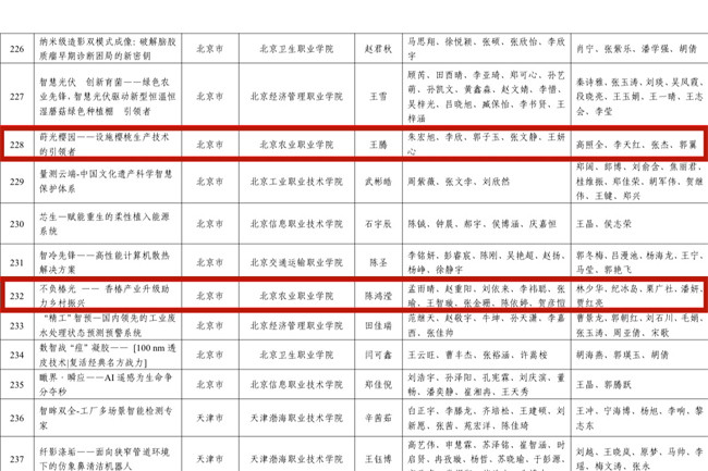 2月28日,教育部公布《中国国际大学生创新大赛(2025)获奖名单》,北京农业职业学院两个项目荣获全国总决赛职教赛道铜奖,彰显了学校在农业职业教育领域的育人成果与创新活力。