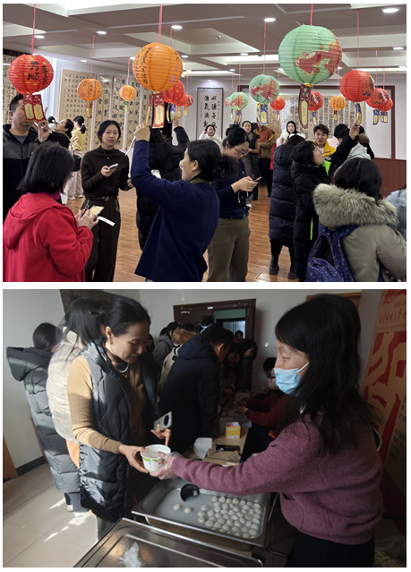 中午12点,活动一开始,大家便扎进了“谜海”。谜题五花八门,涵盖字谜、成语谜、地域物品迷等多个类别,兼具趣味性与知识性,既考脑力又长知识。老师们有的盯着谜面眉头紧锁,有的三五成群“密谋”答案,一旦灵光一闪猜中谜底,脸上立马乐开了花,现场欢声笑语不断。活动现场还贴心设置了品汤专区,热气腾腾的汤圆一碗碗端上,软糯香甜的口感让老师们在忙碌的工作间隙感受到了浓浓的节日温情。