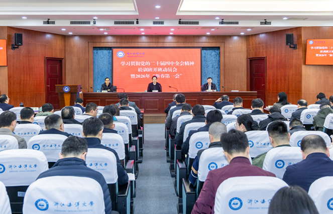 春风启新程,实干开新局。3月6日上午,浙江海洋大学召开学习贯彻党的二十届四中全会精神轮训班开班动员会暨2026年“新春第一会”。会议深入学习贯彻党的二十届四中全会精神,全面回顾学校“十四五”办学成就,分析研判发展新形势新机遇,系统部署2026年重点工作,并对树立和践行正确政绩观学习教育进行动员。会议号召全校上下锚定目标、凝心聚力,高质量开局“十五五”,以实干实绩实效推进高水平应用研究型海洋大学建设。学校党政领导班子成员、全体中层干部参加会议。