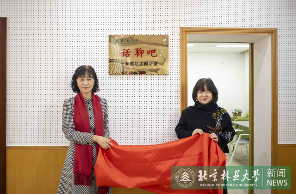 3月8日,北京林业大学举行女教职工倾听室揭牌仪式,校党委副书记、工会主席孙信丽出席仪式并为倾听室揭牌,校学生心理健康教育中心主任、二级工会主席、校女工委员、教职工代表等30余人参加活动。