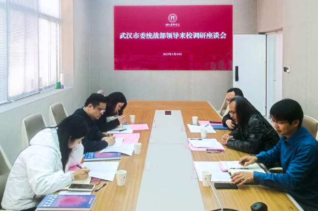 3月10日,中共武汉市委统战部副部长、市社会主义学院党组书记王磊一行来湖北美术学院调研。学校党委常委、统战部部长郝孝飞陪同调研。