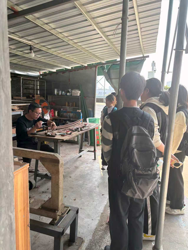 走进莞香博物馆,千年沉香的气息扑面而来。师生们跟随主理人的讲解,从沉香树采香到古法制香,每一道工序都凝结着匠人的心血。莞香不仅是一种香料,更是海上丝绸之路的历史见证,是东莞与海洋文明交融的珍贵符号。当一缕香气穿越千年时光,师生们仿佛看见了往昔商船往来的繁华景象,感受到了文化传承的永恒力量。