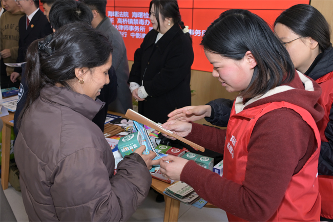 活动现场,高桥司法所、高桥派出所的工作人员向师生发放维权普法与防范校园诈骗传单,高桥镇禁毒办设置的仿真毒品展示台,让师生直观认识到新型毒品的伪装形式与危害。学院社区、蒲家社区的社工还分享了社区居民的真实维权案例,让师生了解日常生活中的各类消费陷阱及应对办法,不少师生边听边记,直呼 “干货满满”。