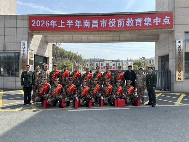 青春无悔,强军有我。为激励广大学子携笔从戎、报效祖国,3月15日,江西制造职业技术学院在南昌市役前教育基地举行2026年上半年入伍新兵欢送仪式,为即将奔赴军营的大学生新兵壮行。学校人民武装部部长裔春刚出席仪式并讲话,人民武装部教师以及退役复学老兵代表参加仪式,仪式由学校人民武装部副部长涂晓敏主持。