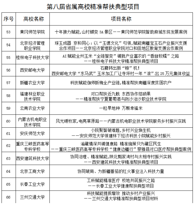 近日,教育部公布第八届省属高校精准帮扶典型项目评选结果,全国共推选产生典型项目66个。黄冈师范学院申报的《十年接力赋能,山村蝶变3A景区》成功入选,成为全省两所入选高校之一,充分彰显了学校在服务乡村振兴战略中的积极作为与显著成效。