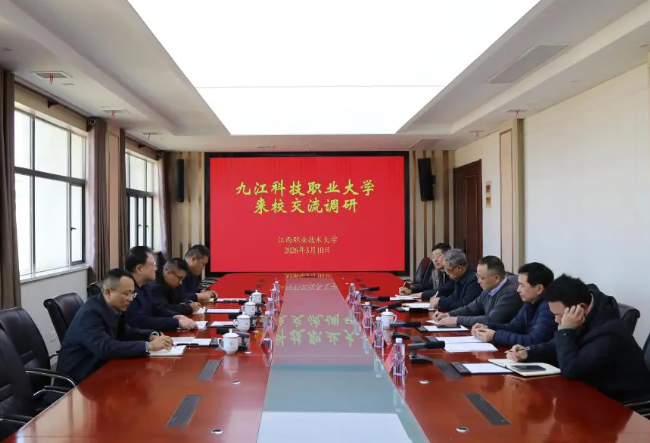 3月10日上午,九江科技职业大学校长叶常林来江西职业技术大学交流调研。学校党委书记刘小强会见了叶常林一行,副校长卢致俊出席交流座谈会。规划处、教务处、双高办、校企合作中心等部门负责人参加。