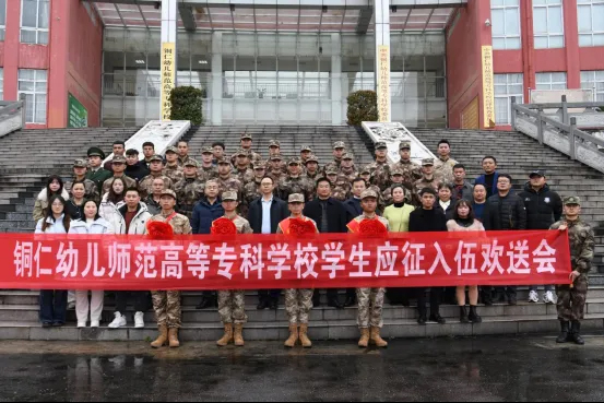 3月17日,铜仁幼儿师范高等专科学校举行2026年上半年应征入伍新兵欢送会。校党委书记宋选文,党委副书记龙树明,党委委员、宣传部部长任明冰,党委委员、党委办主任王家琪出席欢送会,党委学生工作部(武装部)、各系党政负责人、辅导员代表、应征入伍学生家长代表、预征班全体学员参加欢送会。会议由龙树明主持。