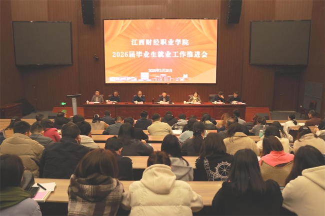 为深入贯彻落实全国和全省高校毕业生等青年就业创业工作会议精神,抢抓春季就业工作关键期,全力促进毕业生高质量充分就业,3月26日,江西财经职业学院在八里湖校区行政楼2号报告厅召开2026届毕业生就业工作推进会。党委书记李松志出席会议并讲话,党委副书记、校长彭慧主持会议。校领导班子成员,各二级学院、相关职能部门负责同志和全体2026届毕业班班主任参加会议。