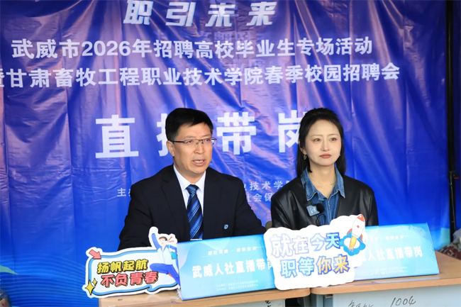 春潮涌动促就业,校企协同筑未来。为深入落实高校毕业生就业工作部署,推动毕业生高质量充分就业,3月28日,甘肃畜牧工程职业技术学院成功举办2026年春季校园招聘会。本次活动得到了武威市人力资源和社会保障局、武威市退役军人事务局及社会各界的大力支持,为毕业生与用人单位搭建了高效精准的双向选择平台。