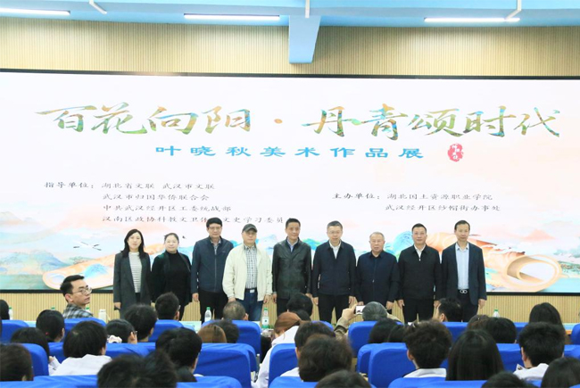 3月28日,由武汉经开区纱帽街办事处与学校联合主办的“百花向阳·丹青颂时代”叶晓秋美术作品展在湖北国土资源职业学院开幕。湖北省文联副主席马尚云,武汉市侨联联络文化与经济科技部部长魏馨,汉南区人大常委会主任陈明骏等省市相关部门领导,学校原党委书记夏彦,党委委员、副校长朱文晶,汉南区政协委员代表、侨联代表、民建代表及省市艺术家代表与学校师生代表齐聚一堂,共同见证这一文化盛事。