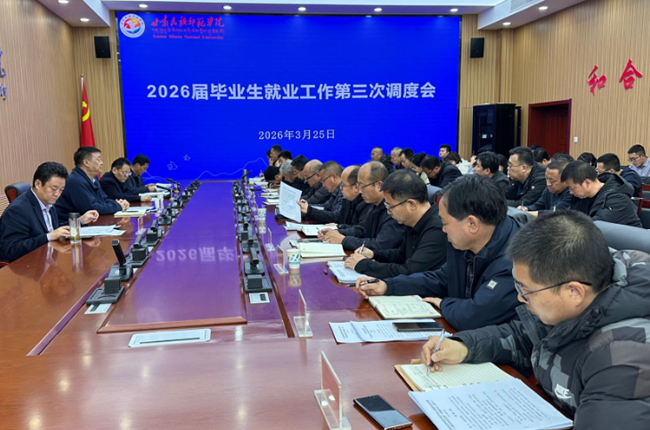 3月25日下午,甘肃民族师范学院在办公楼417会议室召开2026届毕业生第三次就业工作调度会。党委副书记、校长唐伟尧出席会议并讲话,党委委员、副校长旺德主持会议。