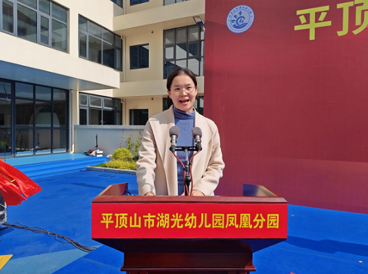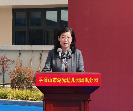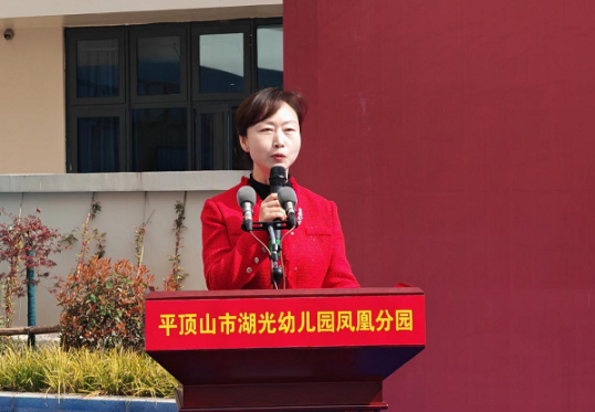 湖光幼儿园园长郭卫红发表热情洋溢的致辞。她回顾了凤凰分园从规划蓝图到落成启用的历程,郑重作出三项承诺:以传承为根,让教育理念薪火相传;以“四有”为范,用温暖守护幼儿童心;以儿童为本,让沃土滋养蓓蕾健康成长。
