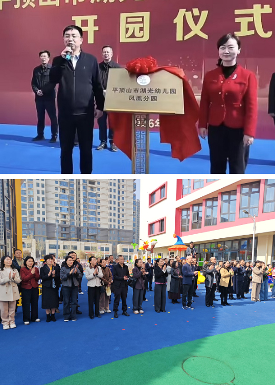 孙洪涛与郭卫红共同为平顶山市湖光幼儿园凤凰分园揭牌。孙洪涛宣布:“平顶山市湖光幼儿园凤凰分园正式开园!” 湖光幼儿园由此迈入崭新发展阶段。