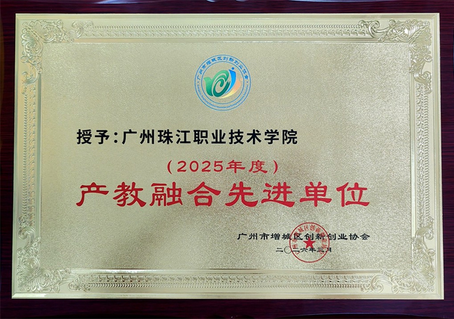 喜讯!广州珠江职业技术学院荣获广州市增城区创新创业协会“2025年度产教融合先进单位”称号