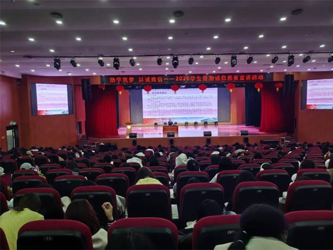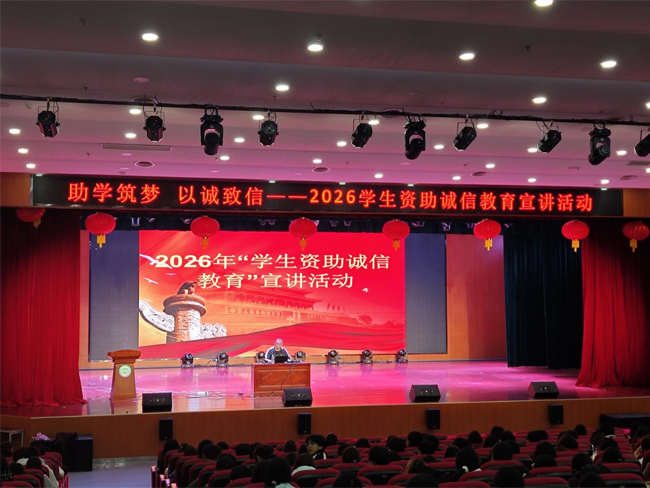 为贯彻落实全国、全省教育大会精神,落实立德树人根本任务,推进诚信教育,普及国家助学贷款政策和金融安全常识。3月31日下午,江西制造职业技术学院学生资助管理中心在学校大礼堂举行了以“助学筑梦·以诚致信”为主题的2026年资助诚信教育宣讲活动。本次活动特邀国家开发银行一级客户经理余志军现场宣讲,宣讲活动由学生资助管理中心主任刘翠媚主持,全校2026级学生代表及所在班级辅导员800余人现场聆听了讲座。