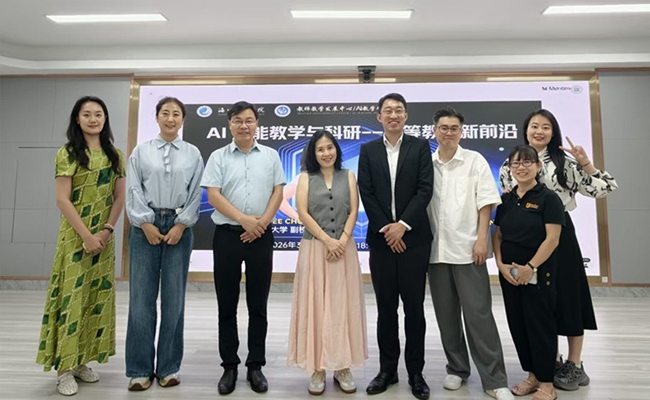 3月27日下午,海口经济学院举办“AI赋能教学与科研——高等教育新前沿”专题讲座,莱佛士教育集团副总裁Joseph Lee、全球招生总监Teresa、项目经理Wendy应邀出席,莱佛士大学副校长Tan Wee Chuen博士、研究生院院长Wong Shaw Chiang博士应邀主讲,全校110余名教师代表参会。