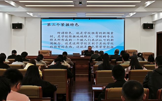 为进一步提升渤海大学新闻宣传工作队伍业务能力,打造高质量、有温度、有深度的新闻作品,切实讲好校园故事,3月27日,渤海大学举办新闻宣传工作业务能力提升专题培训会,特邀新华社辽宁分社编委、高级记者于力开展专题讲座。全校各单位、各部门负责宣传工作人员、通讯员、融媒体中心学生等参与本次培训。