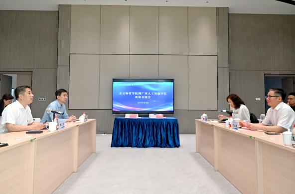 张文涛对于海蛟一行表示欢迎,并介绍了桂林电子科技大学的办学特色、科研攻关进展等情况。他表示,北京物资学院在智慧物流、供应链管理领域积淀深厚,两校在物流领域有着广阔的合作前景。希望双方能聚焦智慧物流与人工智能交叉领域,开展研究生联合培养、关键技术协同攻关等务实合作,依托广西区位优势,共建面向东盟的“人工智能+物流”一体化平台,助力中国—东盟物流产业智能化升级。