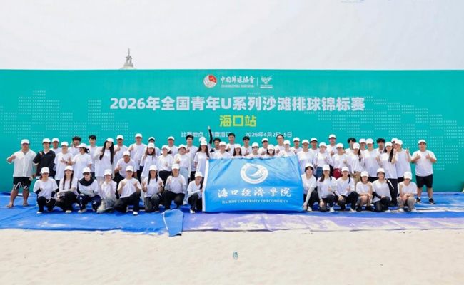 2026年4月2日至5日,全国青年沙滩排球U系列锦标赛海口站在海口经济学院顺利举办。本次赛事中,海口经济学院南海美术学院、南海电影学院、瑞霞国际网球学院、南海体育学院、中芯依智网络学院、莱佛士文创学院共141名学子组建志愿服务团队,全力投身赛事保障工作。