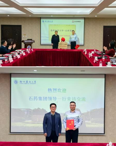 1月18日下午,石药集团营销决策中心副总裁蔡鑫一行来徐州医科大学交流访问,校党委常委、副校长郭栋主持会议,科学技术处、研究生院、发展规划办、肿瘤研究所、药学院等部门负责人参加会谈。