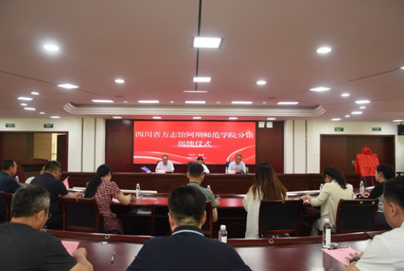 2023年6月14日14:30,四川省方志馆阿坝师范学院分馆揭牌仪式在行政楼第一会议室举行。四川省地方志工作办公室党组成员、机关党委书记邓瑜,阿坝师范学院党委书记吴昊共同为分馆揭牌。阿坝州地方志办党组书记、主任唐志强以及学校相关职能部门和二级学院负责人出席揭牌仪式。阿坝师范学院党委常委、副校长齐泽民主持揭牌仪式。