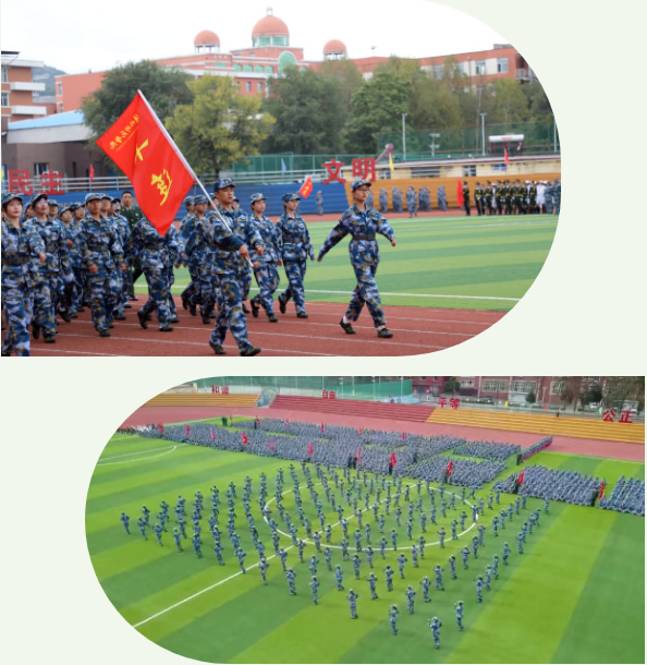 分列式、刺杀操、匕首操、队列表演……整齐划一的动作,响彻全场的口号,充分展现了同学们刻苦努力训练的成果。