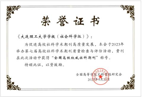 《大连理工大学学报(社会科学版)》此次获评“全国高校权威社科期刊”,是继2014年“全国高校百强社科期刊”、2019年“全国高校社科精品期刊”后获得的又一荣誉,说明了《大连理工大学学报(社会科学版)》办刊质量和学术影响力得到了学术界与期刊界的高度认可,也说明了《大连理工大学学报(社会科学版)》在办刊质量上稳居全国同类期刊前列。