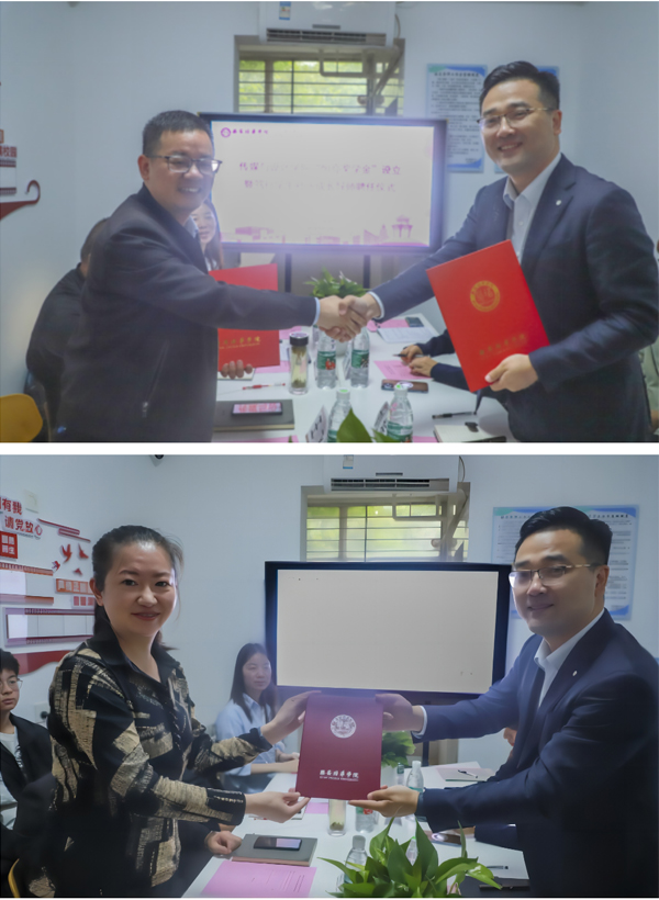之后王飞院长代表西安市培华公益慈善基金会与刘振之校友签订了捐赠协议,王慰老师为其颁发了捐赠证书。同时,学院特聘刘振之校友为笃行社区成长导师。