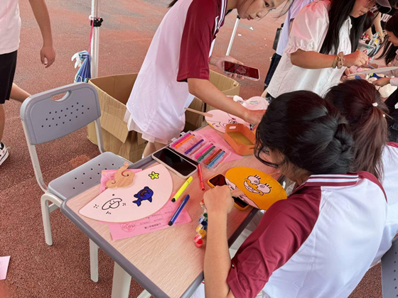 在心理游园会上,以积分制形式设立 “幸福打卡”“画春风”“我的人格”“植物王国”“夹玻璃球”等活动,游园会集趣味性、挑战性于一体,帮助同学们在活动中舒缓身心、收获快乐、补充精神能量。其中“画春风”“投壶”融合了积极心理学理念、中华传统文化与心灵成长,成为场上最受欢迎的两项活动。