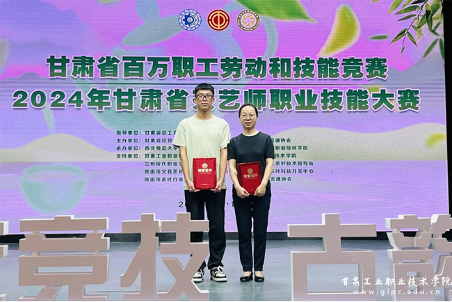 近日,由甘肃省经贸工会工作委员会、甘肃省茶叶流通协会主办的甘肃省百万职工劳动和技能竞赛2024年甘肃省茶艺师职业技能大赛决赛在西北师范大学圆满落幕。甘肃工业职业技术学院派出3名参赛队员参加本次大赛,经过激烈角逐,甘肃工业职业技术学院教师吴建华、学生张宸翔荣获优胜奖,学校荣获优秀组织奖。