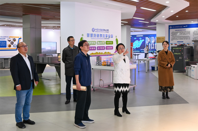 座谈前,王鑫陪同客人先后参观了学校产业会客厅、食品工业产业学院实训基地、智慧冷链物流基地、图书信息中心、云计算技术与应用产业学院实训基地,全方位地了解了学校产教融合工作以及食品检测、信息技术以及冷链物流技术研发情况。