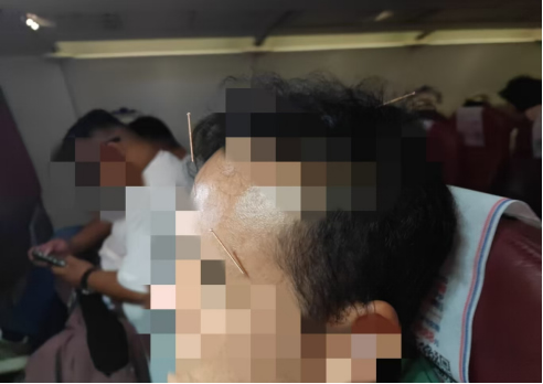 当何龙听到广播紧急寻医时,迅速表明自己是一名医学生,并立刻跟随乘务员赶往患者所在的机舱尾部服务间,在征得患病男乘客同意后,何龙迅速进行中医辨证分析。他先是轻轻搭脉,细心观察患者的舌象,耐心询问患者心中的焦虑之源,利用自己所学的中医知识,沿患者手厥阴心包经实施了刮痧与推拿。他手法熟练而精准,极力缓解患者的身体不适和不安的情绪。紧接着,何龙从随身携带的医疗包中取出针灸针,对其百会穴、太阳穴及镇静穴进行针刺,并施以高速捻转。几分钟后,患者自诉眩晕和焦躁感觉消失,痛苦得到了极大的缓解。何龙的精湛技艺和冷静应对赢得了在场乘客的赞誉和掌声。