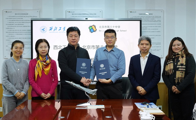2024年12月19日,西北工业大学-北京市第八十中学“‘总师型’人才优质生源基地”授牌仪式在北京市第八十中学举行。西北工业大学北京地区招生负责人、物理科学与技术学院院长助理李东教授代表西北工业大学与北京市第八十中学任炜东校长签订《共建西北工业大学优质生源基地协议书》并授牌学校“‘总师型’人才优质生源基地”。