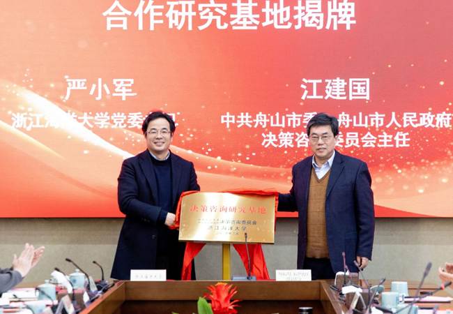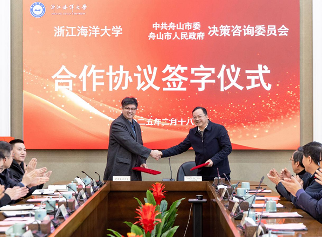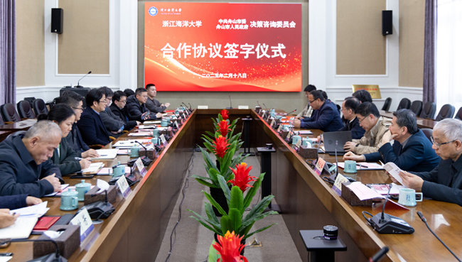 2月18日下午,浙江海洋大学与中共舟山市委、舟山市人民政府决策咨询委员会举行合作协议签字仪式,共辟决策咨询合作新天地。