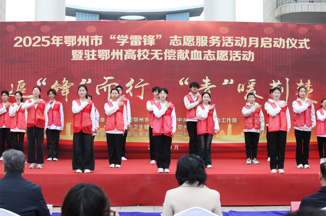 (学生记者王威/文 记者 缑非凡/摄)3月5日,2025年鄂州市学雷锋志愿服务活动月启动仪式暨驻鄂州市高校无偿献血志愿活动在鄂州职业大学求真广场举行。市委常委、统战部部长夏帆出席活动并讲话。校党委书记万国光,市委社会工作部部长刘为民,团市委书记王伟,市卫健委党组书记、主任龚建中,市红十字会党组书记虞崇安,市红十字会常务副会长熊前荣,副校长马凌军出席活动。驻鄂州高校团委负责人及获得荣誉人员、青年志愿者代表三百余人参加活动。