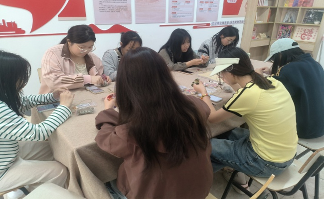 活动现场,心理部学生干部向大家分享了制作技巧,还分享了香囊在传统中药文化中的渊源和寓意。从古代的防疫辟邪,到如今作为传递情感、舒缓压力的载体,香囊承载着深厚的文化内涵。大家围坐在一起,桌上摆满了制作香囊所需的材料,相互交流,小心翼翼地裁剪布料,精心挑选搭配中药材,细致地缝合、装饰。活动尾声,大家互相交流各自的制作过程,拍照留念。