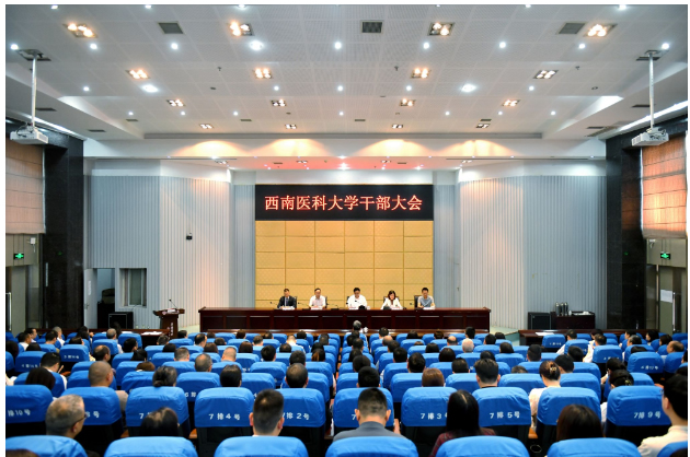 5月13日上午,西南医科大学在城北校区第二学术报告厅召开干部大会,宣布周翔宇同志任职。全校在校校领导、处级领导干部,全国、省、市党代表、人大代表、政协委员和民主党派主要负责人,教编正高二、三级专业技术人员参加会议。会议由学校党委副书记、校长何涛同志主持。