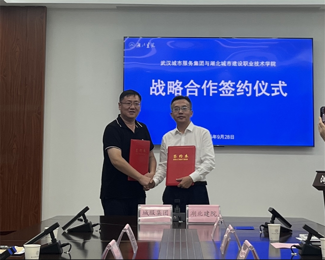 2025年9月28日上午,武汉城市服务集团有限公司与湖北城市建设职业技术学院现代物业管理专业战略合作签约仪式隆重举行。湖北城市建设职业技术学院校长董文斌、副校长易操,武汉城服集团党委书记、董事长余峰、集团纪委书记叶胜军等领导出席。签约仪式由易操主持。