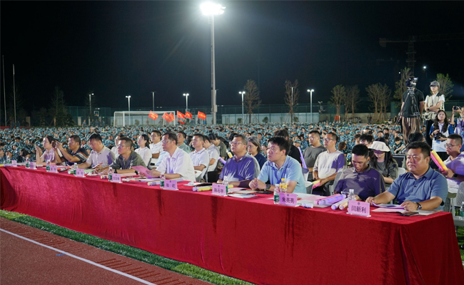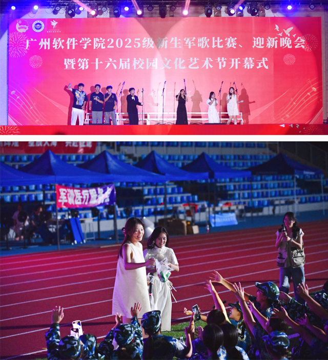 9月27日晚,广州软件学院江门校区2025级军歌比赛、迎新晚会暨第十六届校园文化艺术节在足球场举行。学校党委书记兼督导专员刘友坤、学校副校长张屹、江门校区管委会领导、军训团各营教导员、连队指导员、新生学习导师、辅导员、全体教官、导生和2025级普本新生共同观看比赛。负责本次军歌比赛评分工作的评委团,成员涵盖军训团各部门负责人,以及校团委艺术团的指导老师,他们将围绕演唱技巧、团队协作、精神风貌等维度展开综合评分。